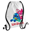 Lilo & Stitch, Backpack pouch GYMBAG white, with pocket (40x48cm) & thick cords