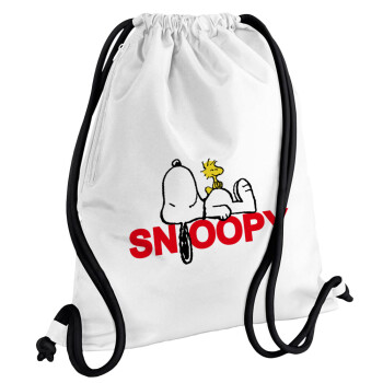 Snoopy sleep, Backpack pouch GYMBAG white, with pocket (40x48cm) & thick cords