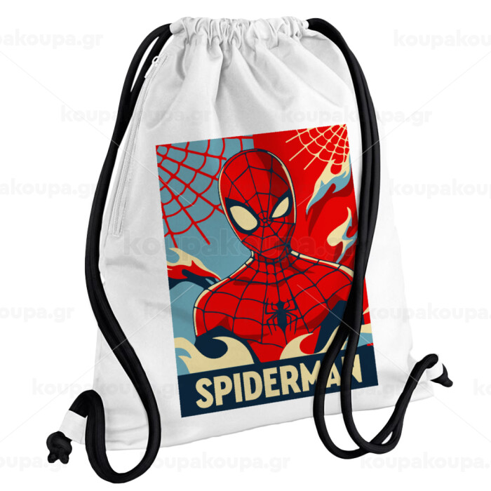 Spiderman kid, Backpack pouch GYMBAG white, with pocket (40x48cm) & thick cords