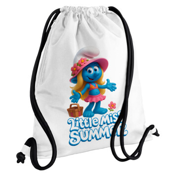 The Smurfs, Backpack pouch GYMBAG white, with pocket (40x48cm) & thick cords
