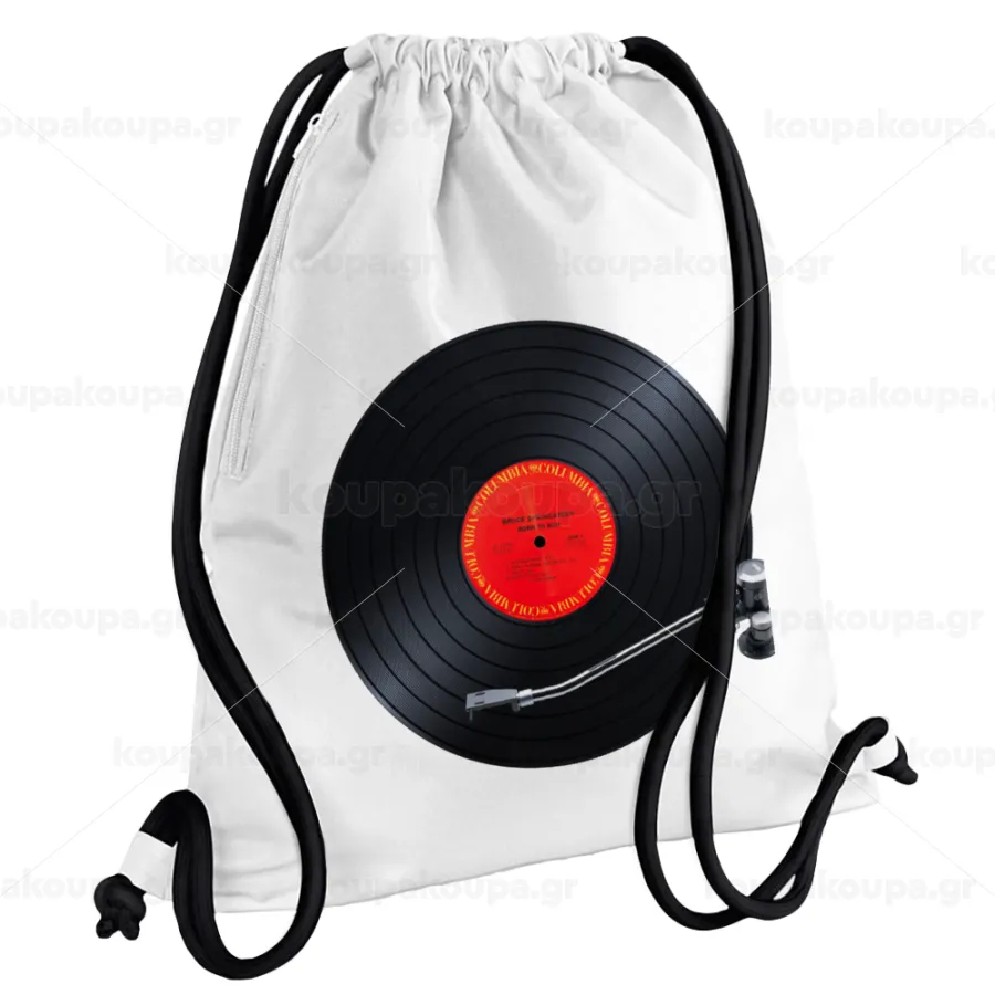 Columbia records bruce springsteen, Backpack pouch GYMBAG white, with pocket (40x48cm) & thick cords