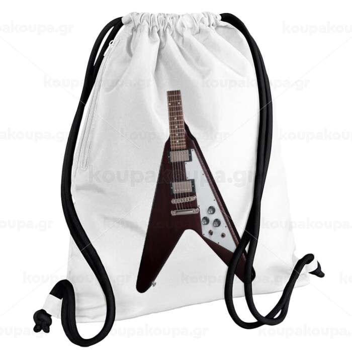 Guitar flying V, Backpack pouch GYMBAG white, with pocket (40x48cm) & thick cords