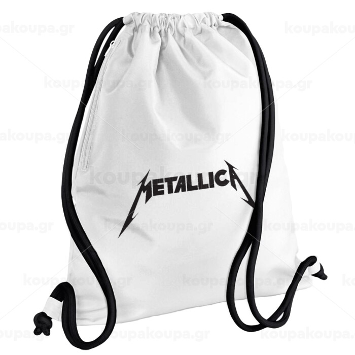 Metallica, Backpack pouch GYMBAG white, with pocket (40x48cm) & thick cords