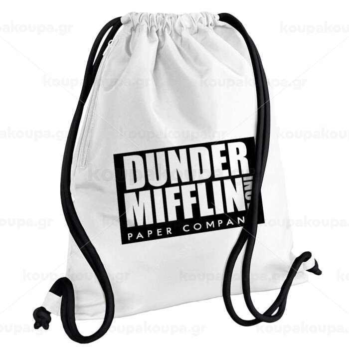 Dunder Mifflin, Inc Paper Company, Backpack pouch GYMBAG white, with pocket (40x48cm) & thick cords