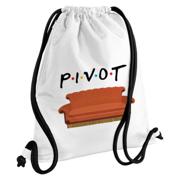 Friends Pivot, Backpack pouch GYMBAG white, with pocket (40x48cm) & thick cords