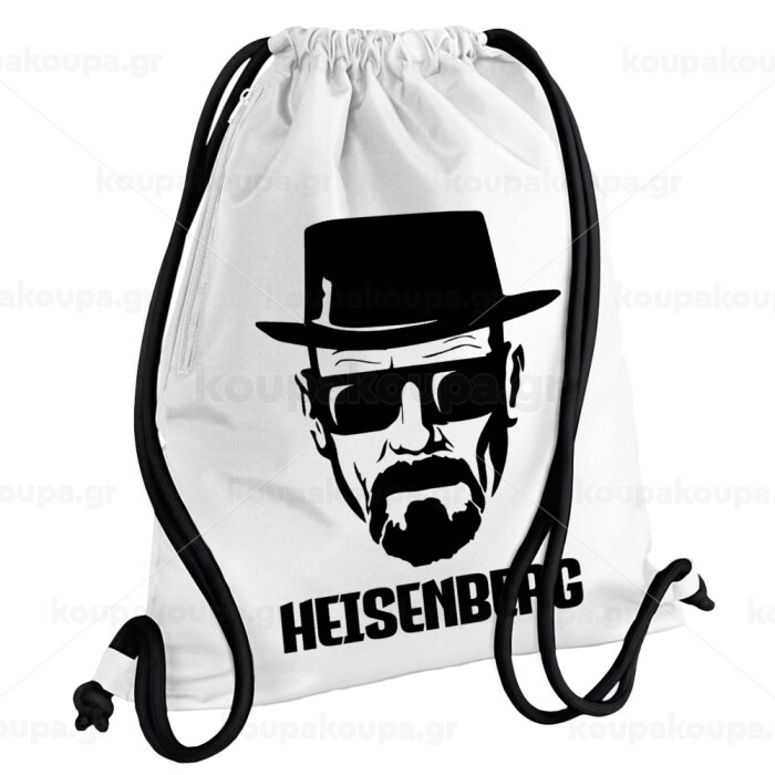 Heisenberg breaking bad, Backpack pouch GYMBAG white, with pocket (40x48cm) & thick cords