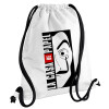 La casa de papel vertical, Backpack pouch GYMBAG white, with pocket (40x48cm) & thick cords