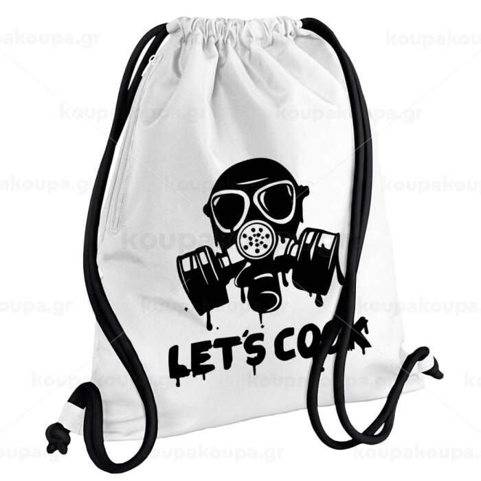 Let's cook mask, Backpack pouch GYMBAG white, with pocket (40x48cm) & thick cords
