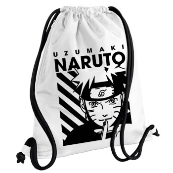Naruto uzumaki, Backpack pouch GYMBAG white, with pocket (40x48cm) & thick cords