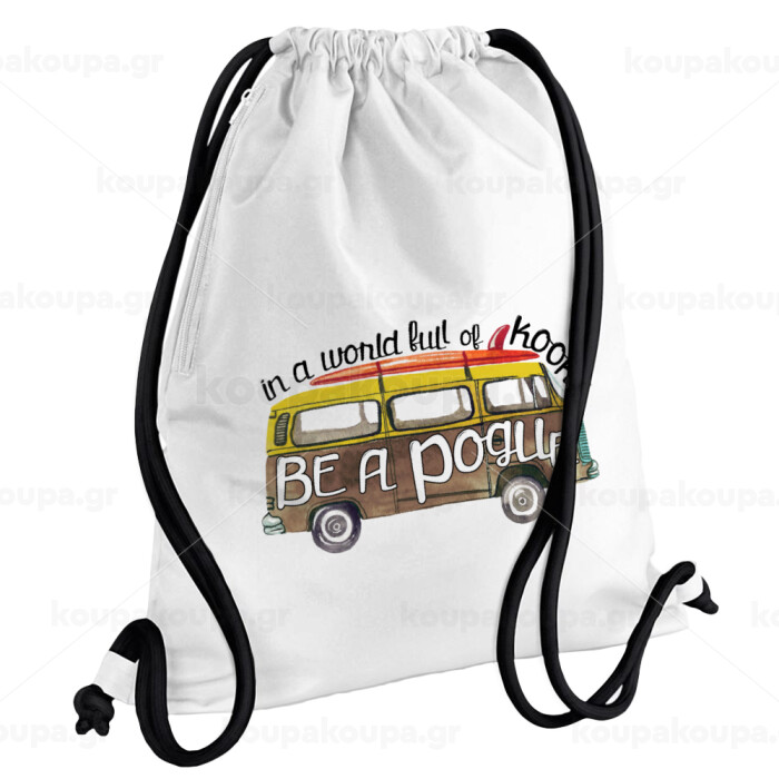 Outerbanks Pogue Life, Backpack pouch GYMBAG white, with pocket (40x48cm) & thick cords