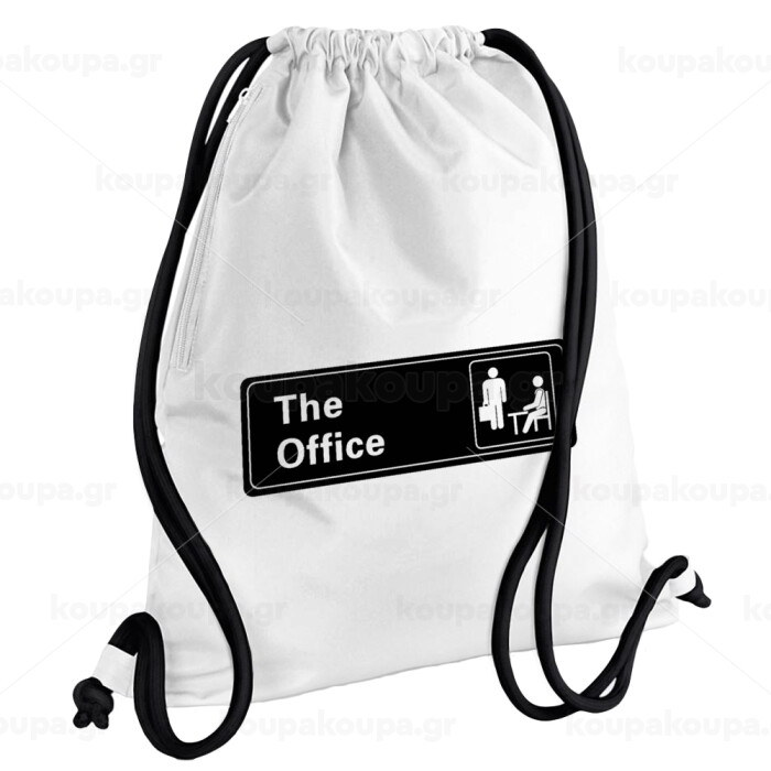 The office, Backpack pouch GYMBAG white, with pocket (40x48cm) & thick cords