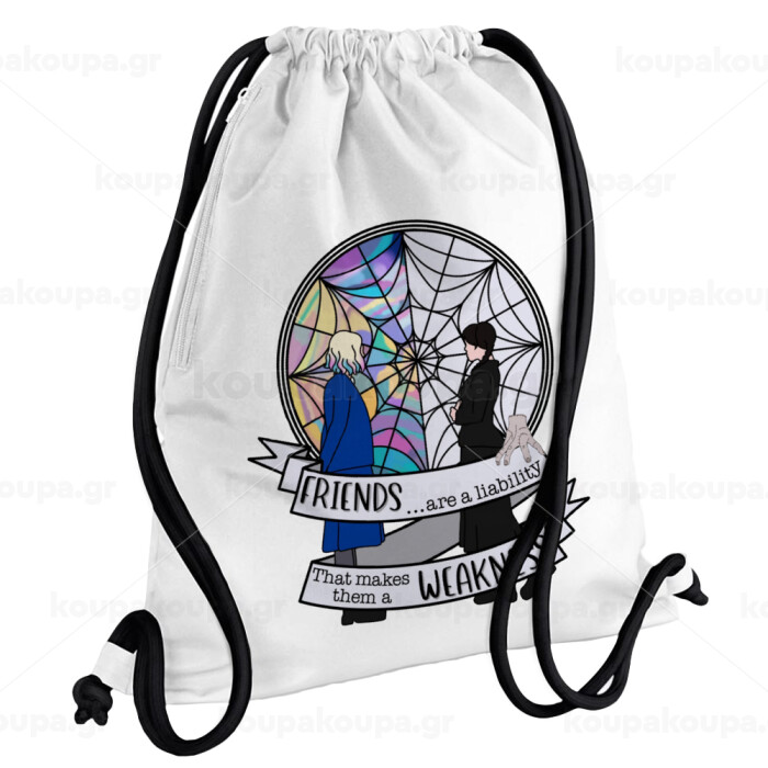 Wednesday window, Backpack pouch GYMBAG white, with pocket (40x48cm) & thick cords