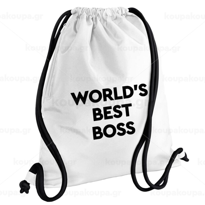 World's best boss, Backpack pouch GYMBAG white, with pocket (40x48cm) & thick cords