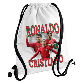 Cristiano Ronaldo, Backpack pouch GYMBAG white, with pocket (40x48cm) & thick cords