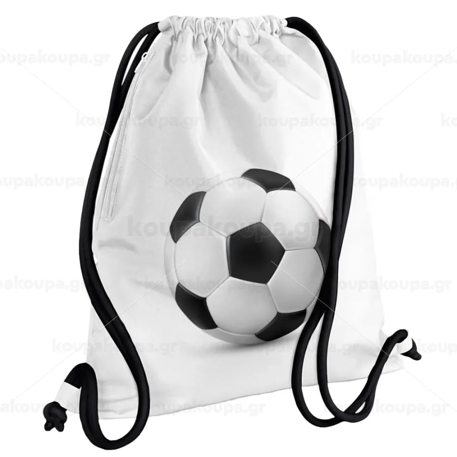 Soccer ball, Backpack pouch GYMBAG white, with pocket (40x48cm) & thick cords
