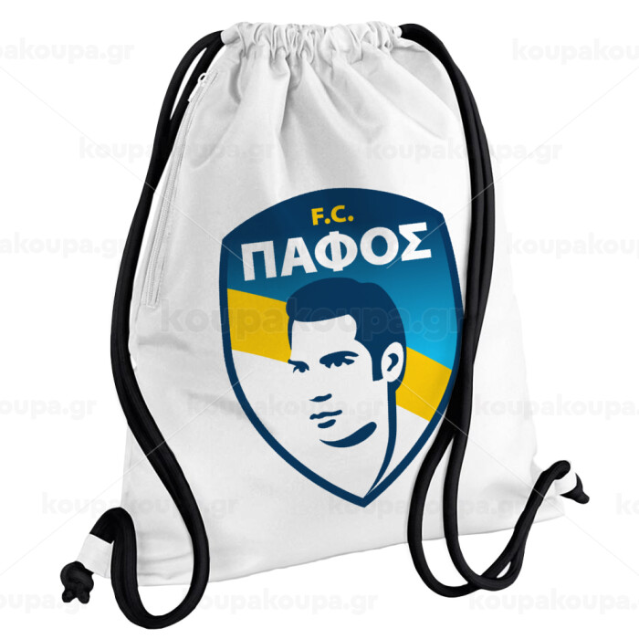 Πάφος FC, Backpack pouch GYMBAG white, with pocket (40x48cm) & thick cords