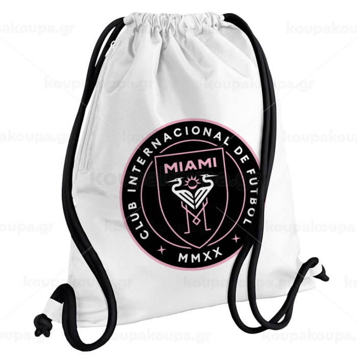 Inter Miami CF, Backpack pouch GYMBAG white, with pocket (40x48cm) & thick cords