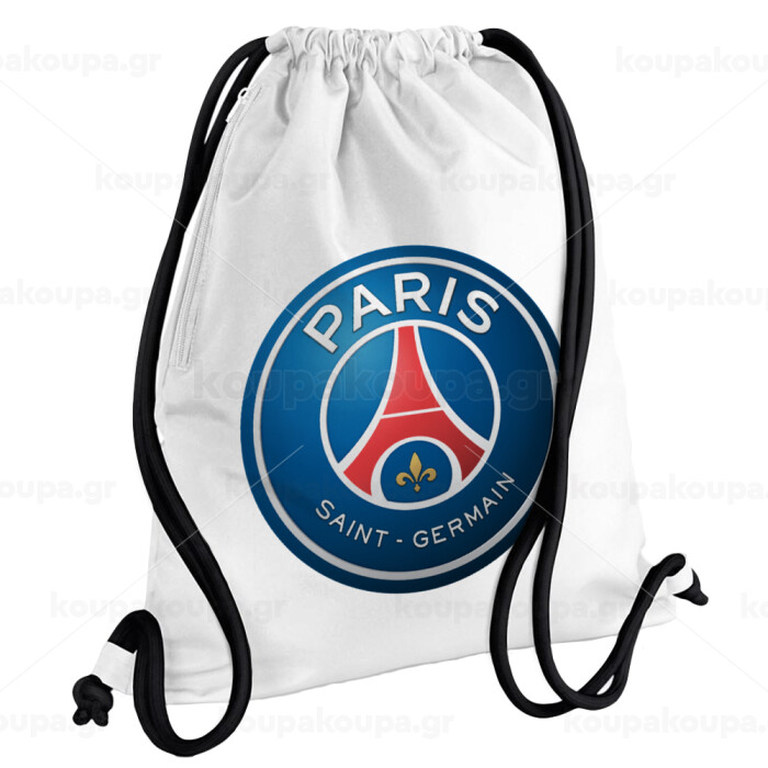 Paris Saint-Germain F.C., Backpack pouch GYMBAG white, with pocket (40x48cm) & thick cords