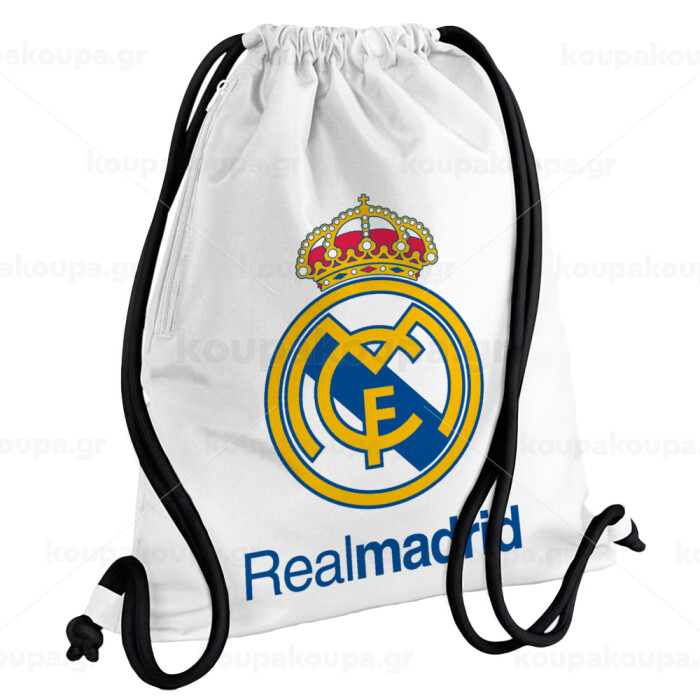 Real Madrid CF, Backpack pouch GYMBAG white, with pocket (40x48cm) & thick cords
