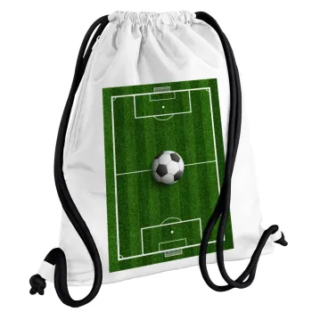 Soccer field, Γήπεδο ποδοσφαίρου, Backpack pouch GYMBAG white, with pocket (40x48cm) & thick cords