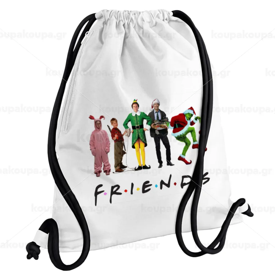 Christmas FRIENDS, Backpack pouch GYMBAG white, with pocket (40x48cm) & thick cords