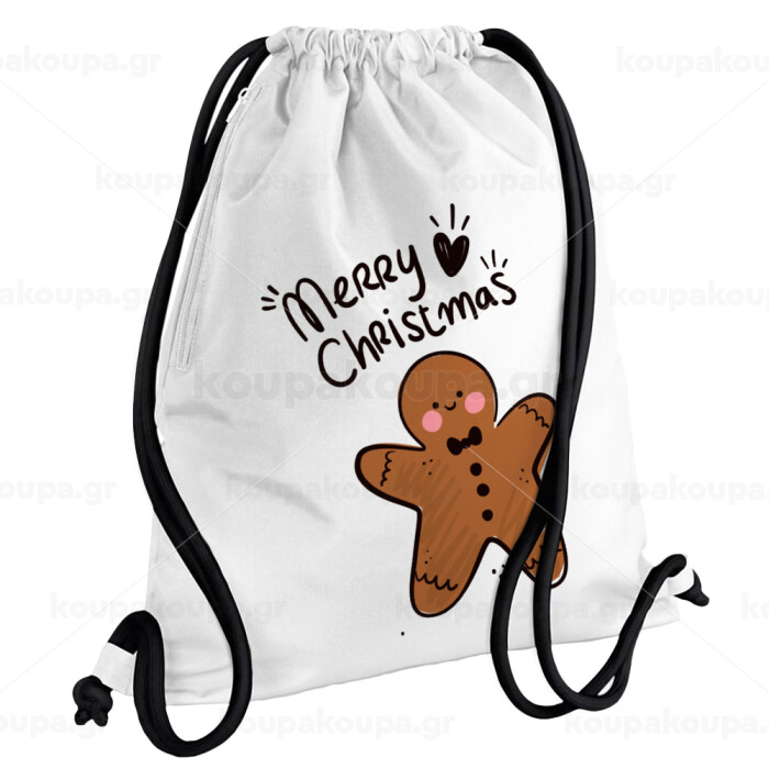 mr gingerbread, Backpack pouch GYMBAG white, with pocket (40x48cm) & thick cords