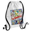 My Day Grinch, Backpack pouch GYMBAG white, with pocket (40x48cm) & thick cords
