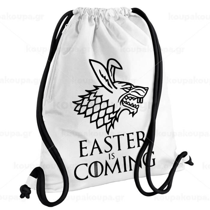 Easter is coming (GOT), Backpack pouch GYMBAG white, with pocket (40x48cm) & thick cords