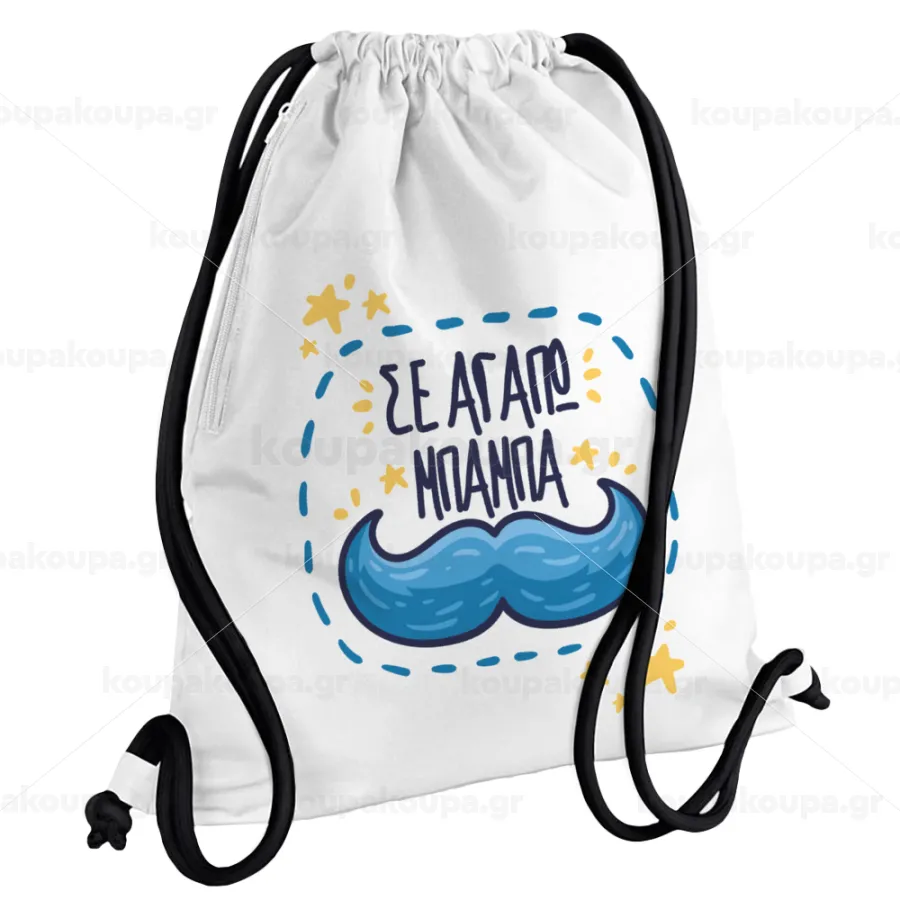 Σε αγαπώ μπαμπά!!!, Backpack pouch GYMBAG white, with pocket (40x48cm) & thick cords