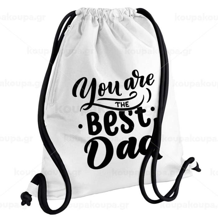 You are the best Dad, Backpack pouch GYMBAG white, with pocket (40x48cm) & thick cords