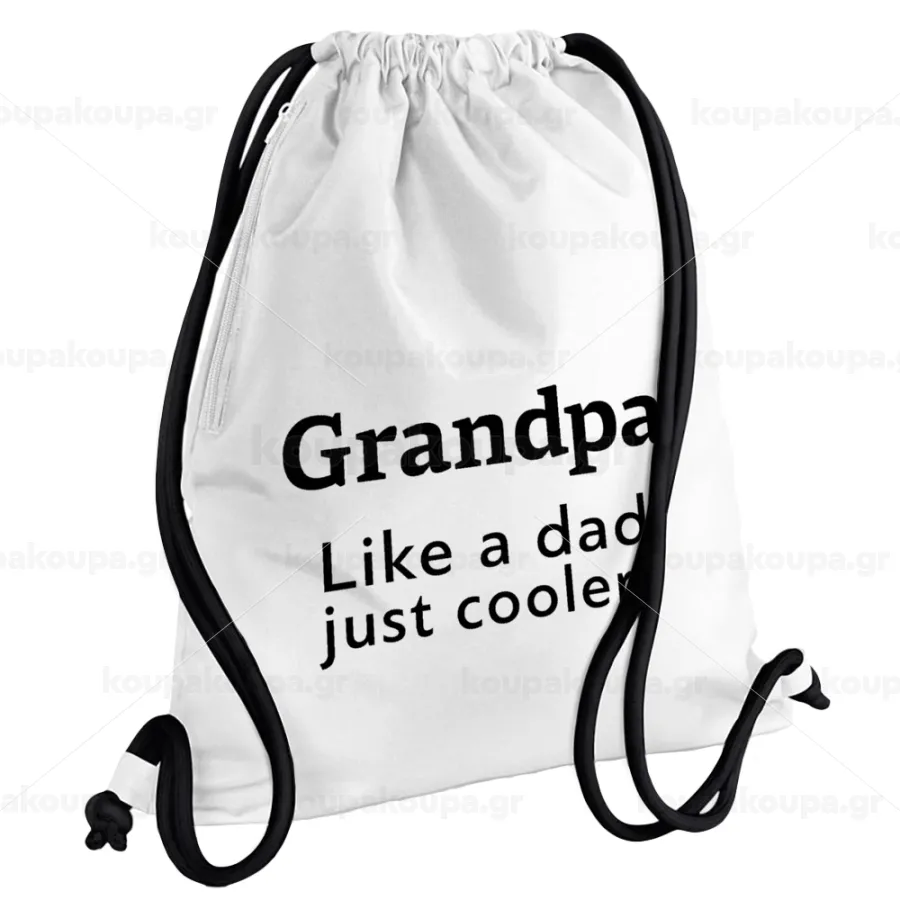 Grandpa, like a dad, just cooler, Backpack pouch GYMBAG white, with pocket (40x48cm) & thick cords