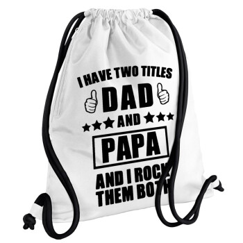 I have two title, DAD & PAPA, Backpack pouch GYMBAG white, with pocket (40x48cm) & thick cords