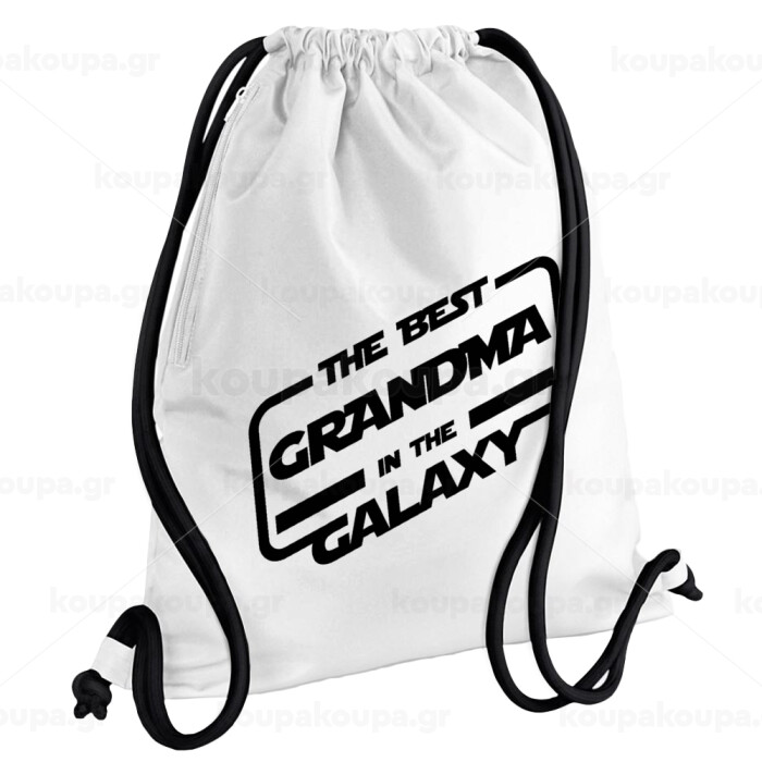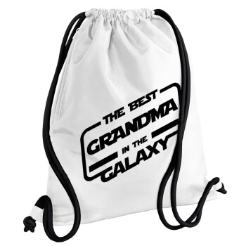 The Best GRANDMA in the Galaxy, Backpack pouch GYMBAG white, with pocket (40x48cm) & thick cords