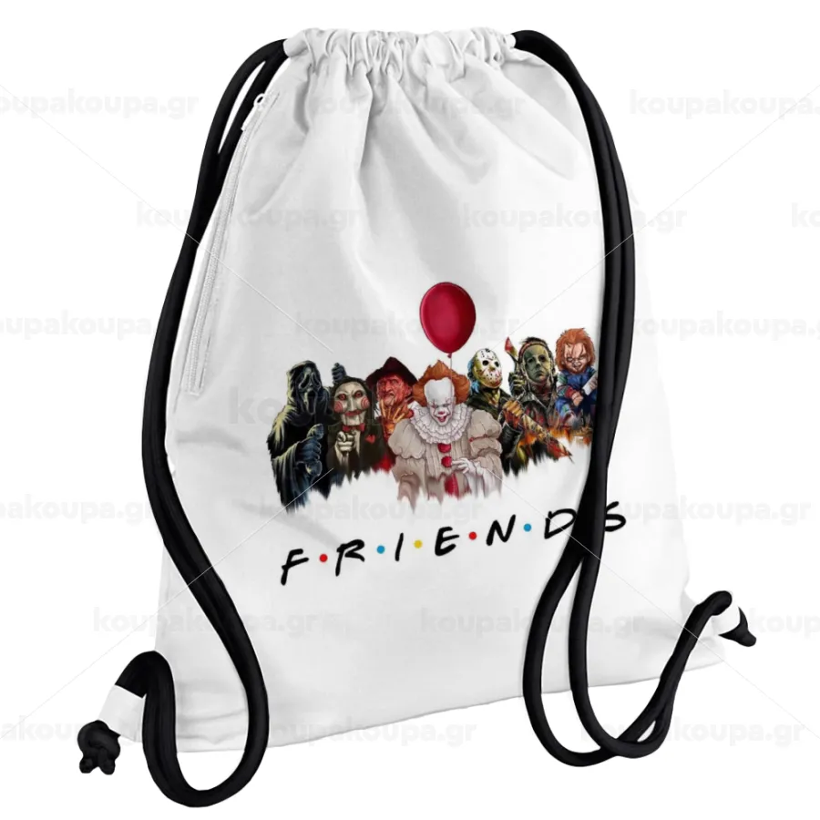 Halloween Friends, Backpack pouch GYMBAG white, with pocket (40x48cm) & thick cords