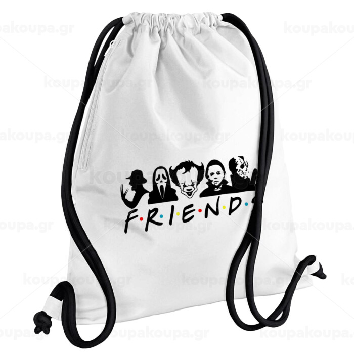 Halloween Friends, Backpack pouch GYMBAG white, with pocket (40x48cm) & thick cords