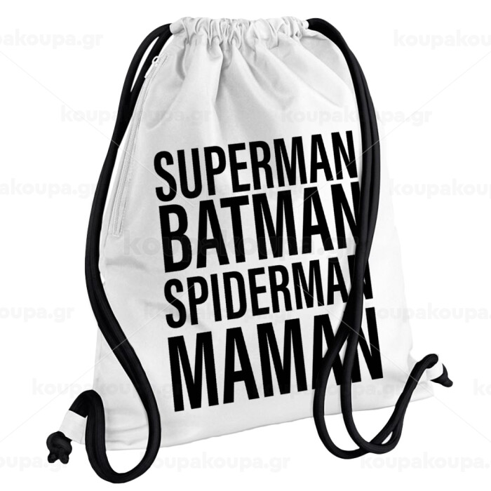 MAMAN, Backpack pouch GYMBAG white, with pocket (40x48cm) & thick cords