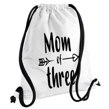 Mom of three, Backpack pouch GYMBAG white, with pocket (40x48cm) & thick cords