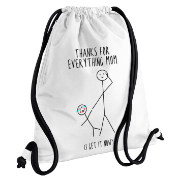 Thanks for everything mom, Backpack pouch GYMBAG white, with pocket (40x48cm) & thick cords