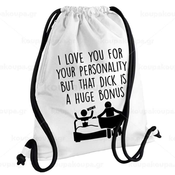 I Love You for Your Personality But that D... Is a Huge Bonus , Backpack pouch GYMBAG white, with pocket (40x48cm) & thick cords