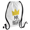 Mr right, Backpack pouch GYMBAG white, with pocket (40x48cm) & thick cords