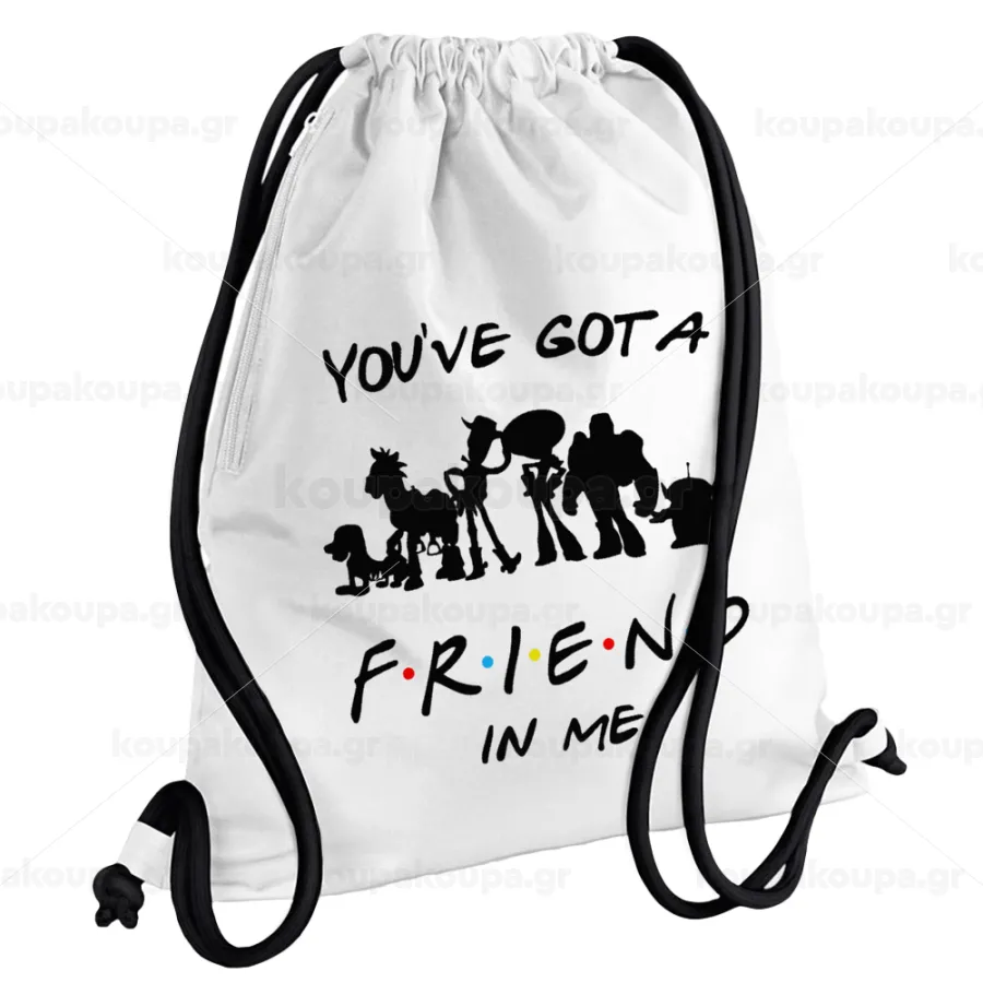 You've Got a Friend in Me, Backpack pouch GYMBAG white, with pocket (40x48cm) & thick cords