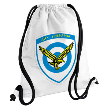 Ελληνική Πολεμική Αεροπορία, Backpack pouch GYMBAG white, with pocket (40x48cm) & thick cords