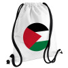 Palestine Flag, Backpack pouch GYMBAG white, with pocket (40x48cm) & thick cords