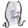 Cute cat unicorn, Backpack pouch GYMBAG white, with pocket (40x48cm) & thick cords