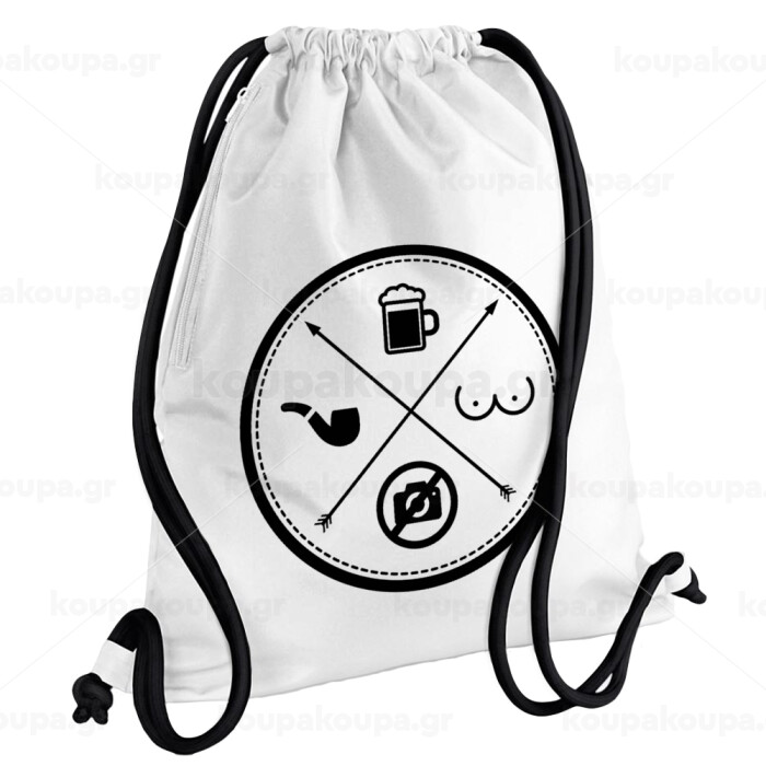 The Bachelor Rules, Backpack pouch GYMBAG white, with pocket (40x48cm) & thick cords