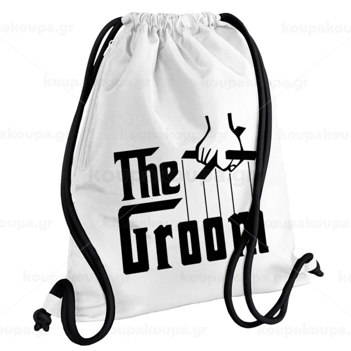 The Groom, Backpack pouch GYMBAG white, with pocket (40x48cm) & thick cords