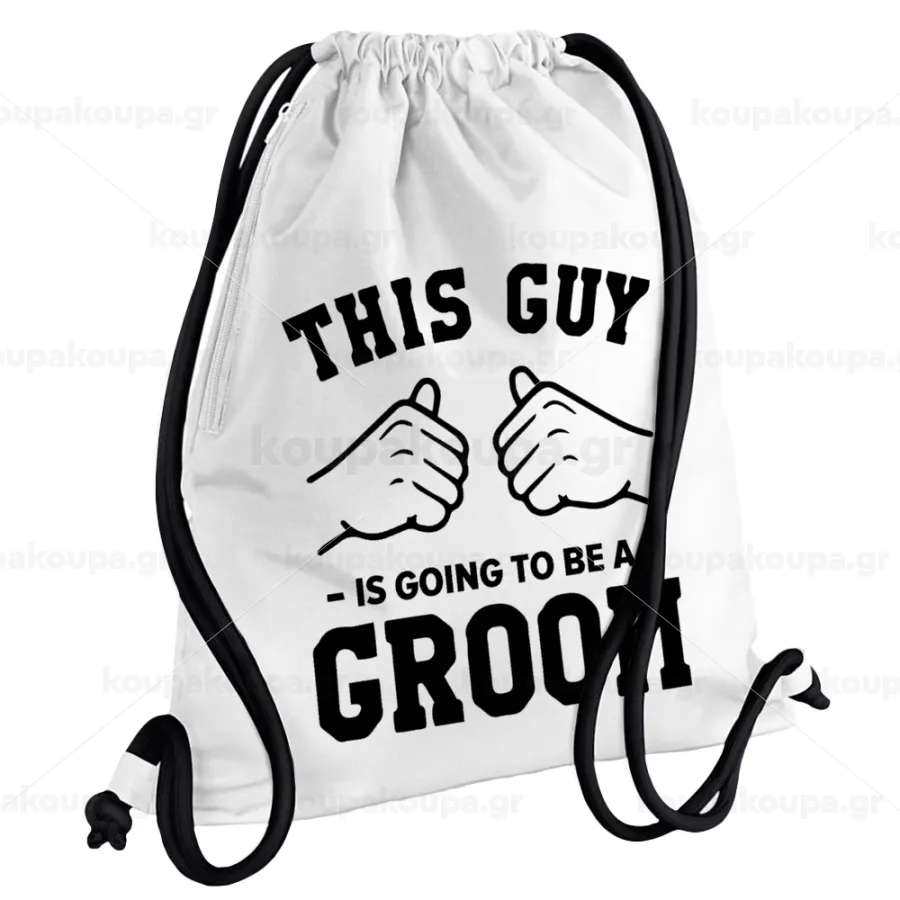 This Guy is going to be a GROOM, Backpack pouch GYMBAG white, with pocket (40x48cm) & thick cords