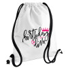 Birthday Diva queen, Backpack pouch GYMBAG white, with pocket (40x48cm) & thick cords