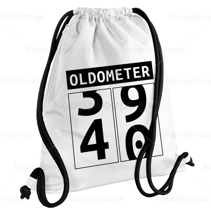 OLDOMETER, Backpack pouch GYMBAG white, with pocket (40x48cm) & thick cords