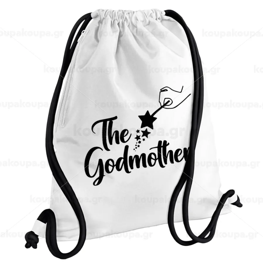 Fairy God Mother, Backpack pouch GYMBAG white, with pocket (40x48cm) & thick cords